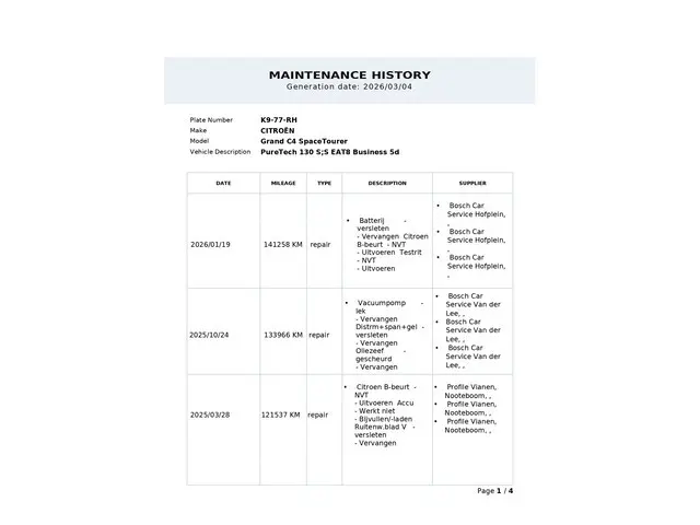 Voertuiggegevens van deze Citroën Grand C4 Spacetourer