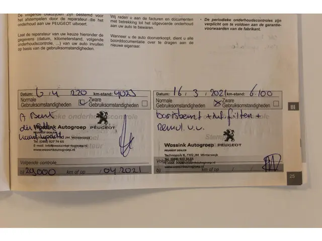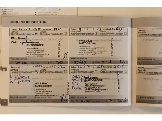 - Onderhoudsboekje (fysiek)
