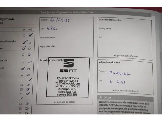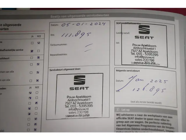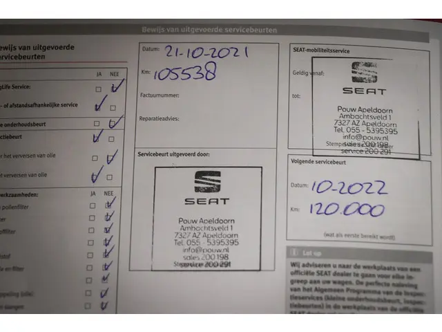 - Onderhoudsboekje (fysiek)
