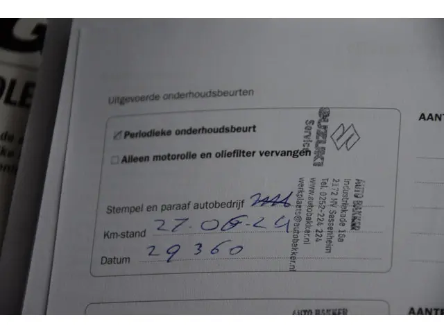 - Onderhoudsboekje (fysiek)