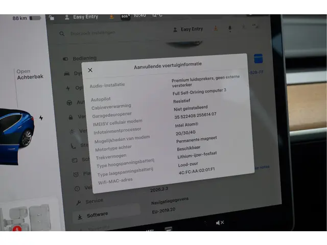 Voertuiggegevens van deze Tesla Model 3