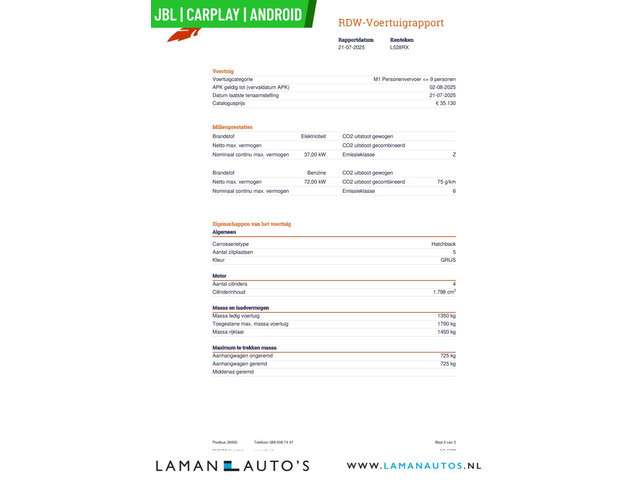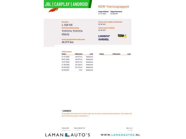 Voertuiggegevens van deze Toyota Prius