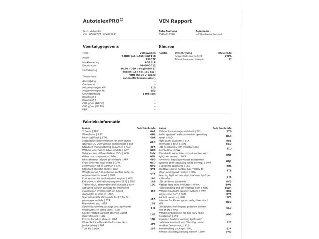 Voertuiggegevens van deze Volkswagen T-Roc