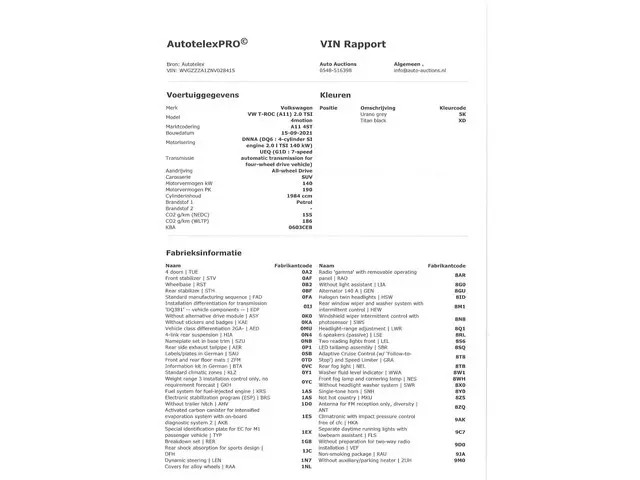 Voertuiggegevens van deze Volkswagen T-Roc