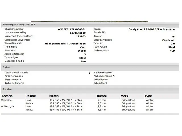 Voertuiggegevens van deze Volkswagen Caddy