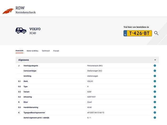 Voertuiggegevens van deze Volvo XC40
